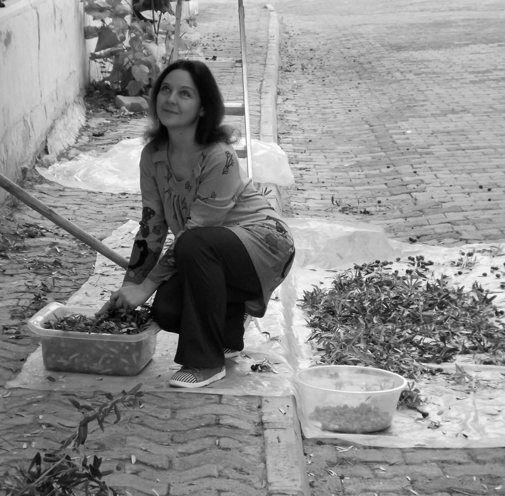 У нас в саду растут две оливы. Серебристые листочки, неприметные мелкие цветки со слабым запахом, бледные плоды, которых среди листвы и не особо заметишь. Но в один момент они начинают созревать. И вот уже все дерево просто усыпано ярко-зелеными, а потом сизо-черными оливками. И они падают на траву. Пора собирать урожай.