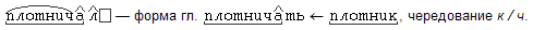 Существительное плотник в современном языке непроизводно, так как не может быть мотивировано через слово плот. Следовательно, плотник / плотнич – корень.
