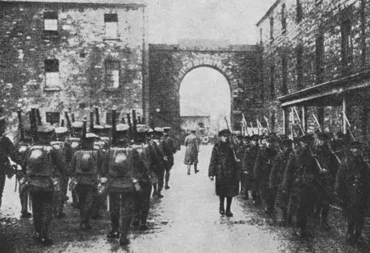 Английские войска (слева) в январе 1922 г. покидают Ирландию. Их сменяет ирландская воинская часть