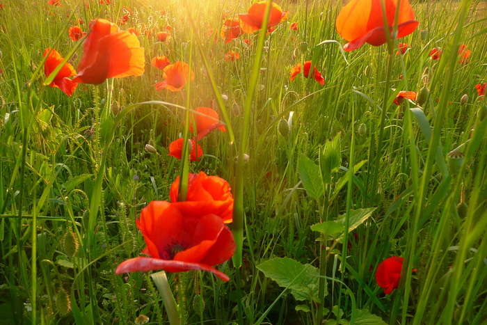 А ещё тюльпаны, одуванчики, анютины глазки, незабудудки, маки, звездчатка, глухая крапива. Перевожу дыханье. Всех не перечислишь.