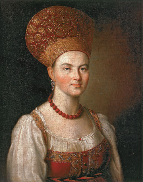 Портрет неизвестной крестьянки в русском костюме. 1784. Государственная Третъяковская галерея, Москва
