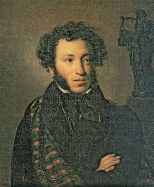 С наброшенным на плечо английским клетчатым плащом Пушкин уподобляется великому английскому поэту-романтику Байрону. Свое отношение к портрету он выразил в стихотворном послании Кипренскому «Любимец моды легкокрылой, / Хоть не британец, не француз, / Ты вновь создал, волшебник милый, / Меня, питомца чистых муз, – / И я смеюся над могилой, / Ушед наверх от смертных уз. / Себя как в зеркале я вижу, / Но это зеркало мне льстит…» Современники, близко знавшие Пушкина, утверждали, что более похожего портрета великого поэта не существует.