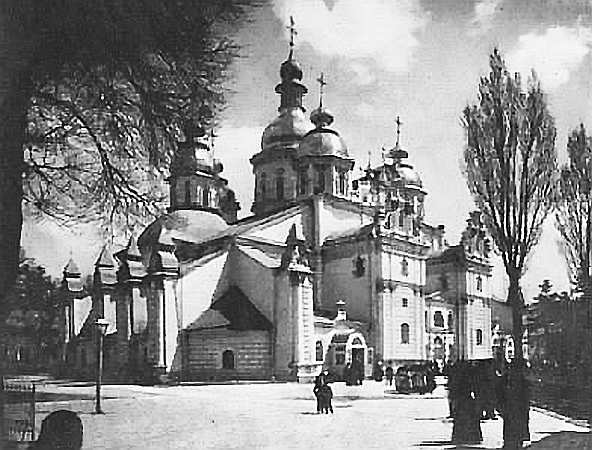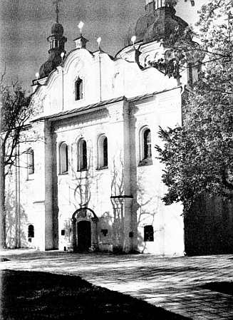 С той поры массивный силуэт Кирилловской церкви стал господствовать над равниной и холмами Дорогожичи. Покрытая кружевом лепных узоров, величественная и торжественная, она сверкала белизной стен, ярко выделяясь на фоне густой зелени.
