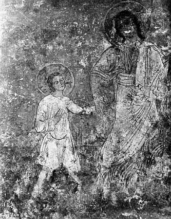 Архангел Михаил, ведущий юного Иоанна Крестителя в пустыню. Фреска Кирилловской церкви