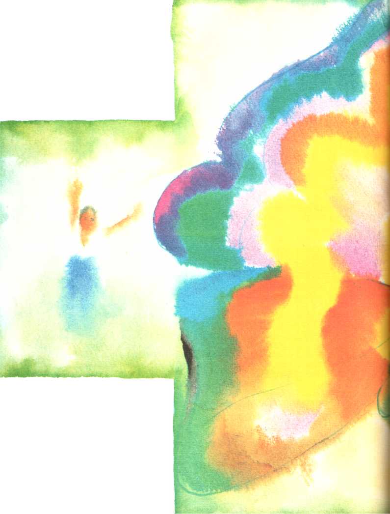 А вскоре все увидели: на поверхности воды всплыл цветок. Это была роза, которую Ампаро вплёл себе в волосы, только теперь у неё оставалось всего четыре лепестка. Цветок медленно поднялся в воздух и полетел – у него появились крылья! Изумлённые люди не отрывали от цветка глаз, а он летел, переливаясь всеми цветами радуги. Эстер побежала следом, за ней побежали другие. И вскоре все увидели, как цветок прилетел в сад Эстер и стал порхать, перелетая с куста на куст.