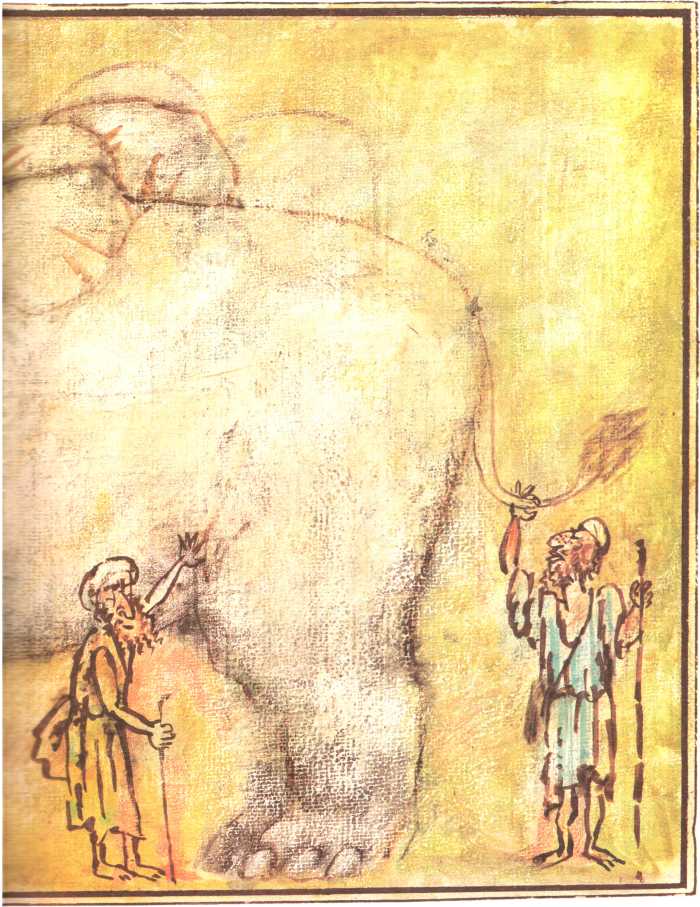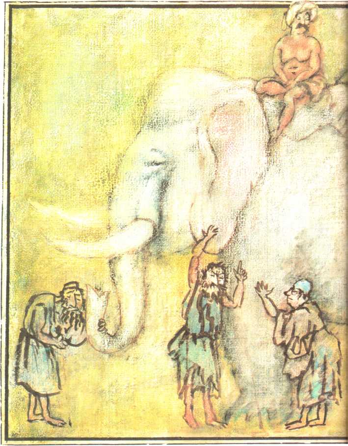 Незрячие так и сделали. Они приблизились к слону и начали его ощупывать. Один потрогал кончик хвоста, другой – ногу, третий – уши, четвёртый – хобот, пятый – бок.