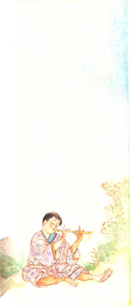 Взял он с собой свою любимую флейту да ещё маску седого старика, положил их к себе за пазуху и пошёл к берегу моря. Стоит на берегу моря лодка с парусом.