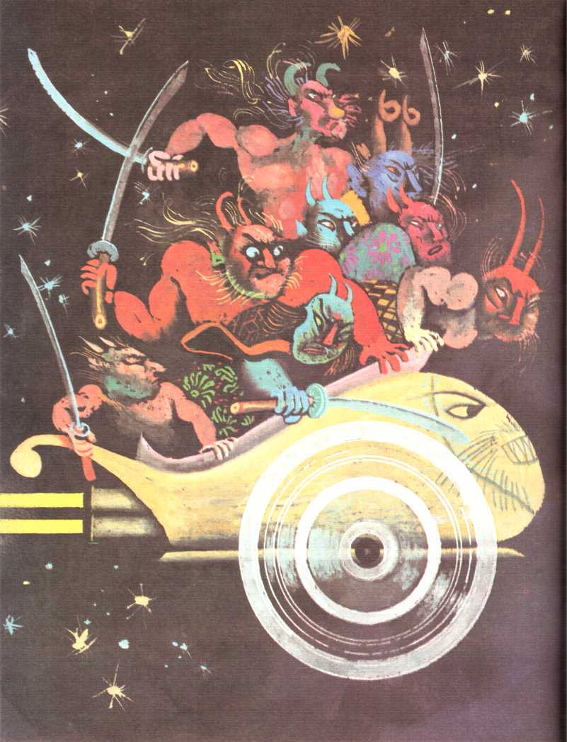 – Скорее тащите из железной кладовой нашу самую быструю колесницу! – вопит Огненный чёрт. Глаза у него от злости во лбу как колёса вертятся.