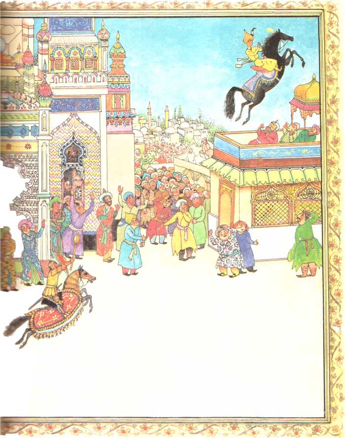 – Владыка! Эти подарки ничего не стоят в сравнении с моим конём. Видел ли ты когда-нибудь коней, летающих по воздуху?