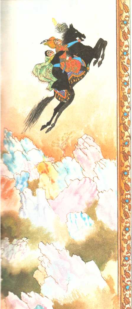 Хасан повернул винт, и вдруг конь задвигался, поднялся к облакам и полетел быстрее ветра.
