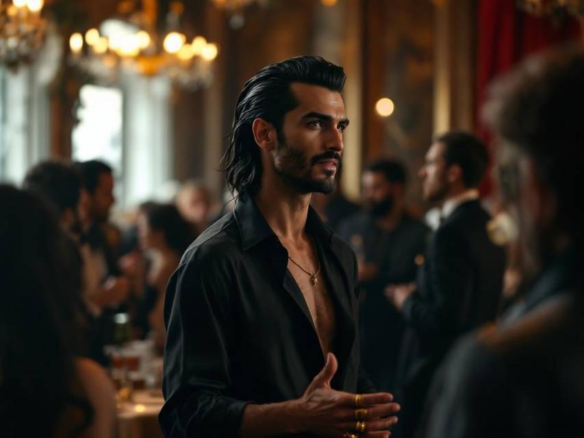 Там на бал-маскараде, мне показалось, что его поведение связано с образом вампира, слишком наигранно, театрально он себя вёл, оказалось это его естественное поведение.