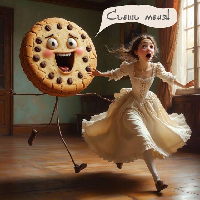 – Нет, огромная печенька бегала за мной и кричала: «съешь меня, съешь!», а живот завывал… «ммм».