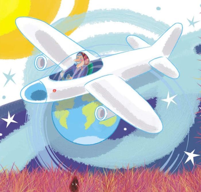 Петька отчаянно посмотрел на коня. Но тот пожал плечами и уселся, скрестив по-турецки задние ноги и подперев морду копытом. Петька тоже сел по-турецки и стал думать. Сначала в голове было тихо. Потом вдруг вспомнилось, как однажды папа позвонил ему из Америки и спросил, который час. Петька ответил, что сейчас восемь вечера, а папа сказал: «А у нас утро!» Вот он, ответ! Бабкина сестра просто-напросто летела на самолёте против вращения земли, то есть с востока на запад! Таким образом, вылетев, скажем, из Владивостока в пять утра по местному времени, она оказалась, например, в Москве в пять утра по московскому времени! И получилось, что ни секунды не прошло! А «железная телега» – самолёт!