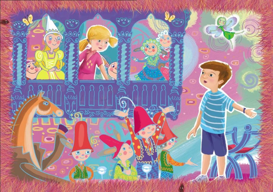 И они сели верхом на коня – Петька впереди, а Тишка сзади. И на протяжении всего пути и тирлимпоны, и цурипопики, и блямблямчики – все-все жители Страны Детских Снов бежали за конём и изо всех сил кричали: «О-лэй! О-лэй! О-лэй!»