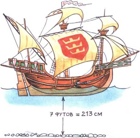 – Киль – это нижняя балка посередине днища судна от носа до кормы для обеспечения прочности и устойчивости корпуса. А фут – старинная мера длины, немного больше 30 сантиметров. Если под килем, то есть под дном, не будет достаточно воды, судно просто сядет на мель.