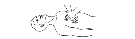 Надавливает на грудину достаточно сильно – так, чтобы она прогнулась на 5–6 см, на мгновение задерживается в этом положении, после чего быстро отпускает руки. Частота надавливаний должна составлять 50–60 в 1 мин. Через каждые 15 надавливаний делают 2 частых вдоха пострадавшему методом «рот в рот» или «рот в нос».