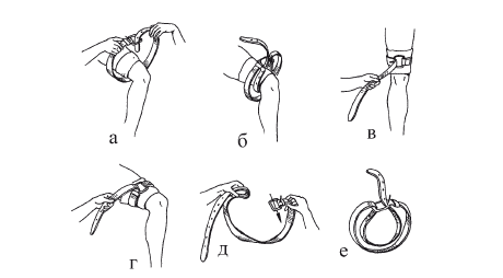 6. Недопустимо держать жгут на конечности больше 2 ч летом и 1–1,5 ч зимой, так как прекращение кровоснабжения конечности на более длительный период при низких температурах приводит к ее омертвению.