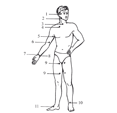 Рисунки 14. Точки для пальцевого прижатия артерии