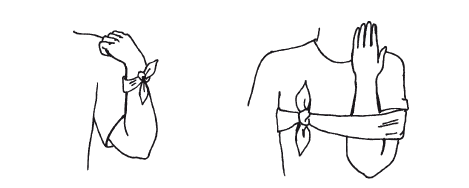 Эти предметы надо наложить выше или ниже места ранения, а их концы завязать узлом с петлей. В петлю следует вставить палку, с помощью которой затянуть закрутку до остановки кровотечения. Затем свободный конец палки закрепить бинтом. Когда накладывают закрутку, соблюдают те же правила, что и при пользовании жгутом. Нельзя использовать для закрутки тонкие веревки, электрические провода, телефонные кабели, так как они способны повредить мягкие ткани.