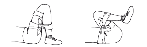 Рисунок 16. Остановка артериального кровотечения при ранении голени сгибанием конечности