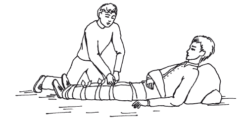 Рисунок 17. Прибинтовывание поврежденной конечности к здоровой