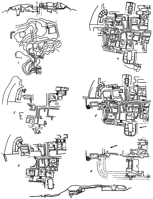 Таблица 6. Чирикрабатская культура. Планы и разрезы городищ и поселений.