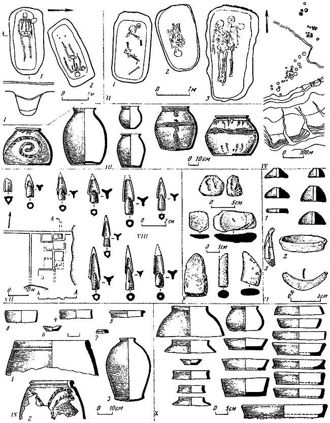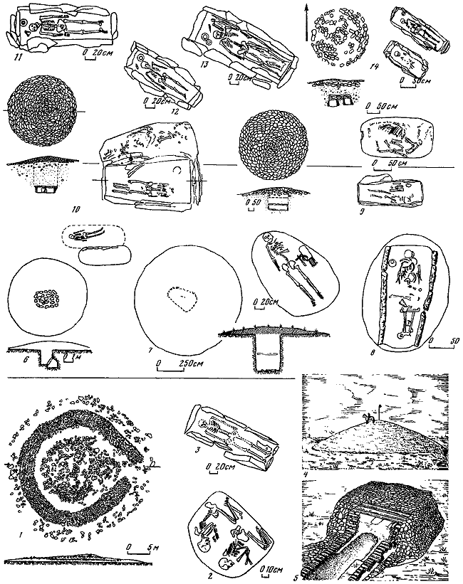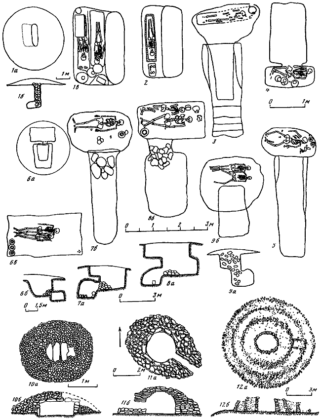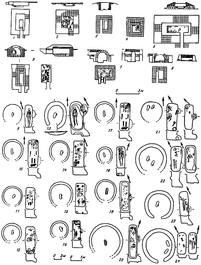 Таблица 8. Чирикрабатская культура. Погребальные сооружения, планы и разрезы.