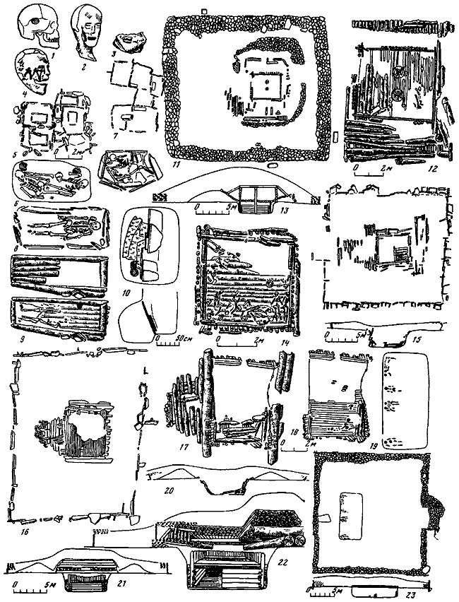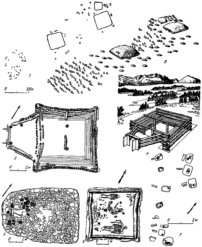 Таблица 111. Хунну. Погребальный обряд. Внутримогильные сооружения.