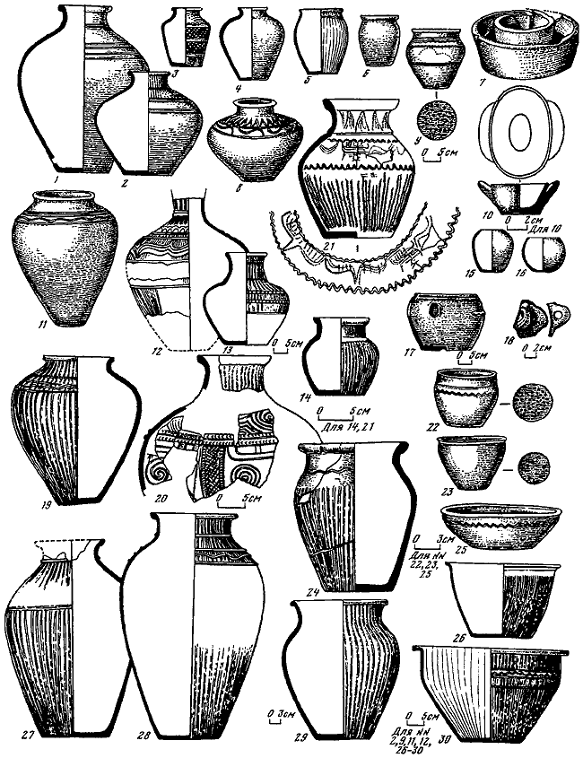 Таблица 11. Чирикрабатская культура. Керамика второй группы (1-30).