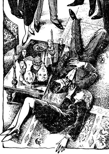 Бэрридж, сидевший ближе всех к Луизе, оказался возле нее первым и склонился над распростертым на ковре телом. Гловер тоже сделал движение в сторону Луизы, но вдруг как-то неловко шагнул вбок (раздался хруст стекла – под ноги ему попался упавший бокал Луизы), покачнулся, разлив содержимое своего бокала, последним усилием поставил его на столик, покачнулся снова, с искаженным лицом схватился за край камина и упал. Патрик, словно парализованный, застыл на своем месте. Ли вначале кинулся к Луизе, но потом в растерянности остановился между ней и Гловером.