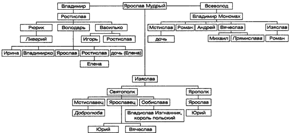 Каждый князь имел два имени: княжеское языческое и крестильное христианское. В науке есть мнение, что княжеское и крестильное имена составляли устойчивые пары, то есть обладатель княжеского имени Владимир при крещении обязательно получал имя Василий, Мстислава крестили Федором, Всеволода – Гавриилом и т. д. В этом вопросе уверенности нет, потому что есть примеры, когда носители одного и того же княжеского имени (скажем, Ростислав) могли получать церковное имя Михаил или Григорий, зато окрещенный Михаилом мог быть как Ростиславом, так и Святополком.