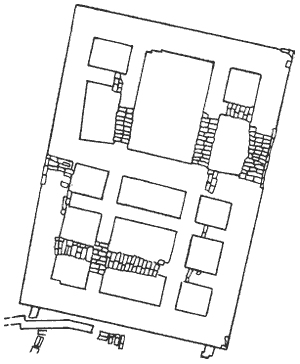К VI веку до н. э. там, где это было возможно, этруски использовали решетчатую планировку улиц. Об этом можно судить, изучив древние центры Этрурии, такие как некрополь в Орвието, где гробницы расположены вдоль четко очерченных улиц, пересекающих друг друга под прямым углом. Наиболее благоприятные условия создавались в новых колониях. Решетчатая планировка в Кампании, в древней Капуе (современный город Санта-Мария-ди-Капуя-Ветере), была позаимствована у этрусков. Можно вспомнить прямые каналы на севере, в Спине, однако на сегодняшний день наиболее совершенный образец планировки этрусских городов – это открытый в ходе раскопок Марцаботто (рис. 13).
