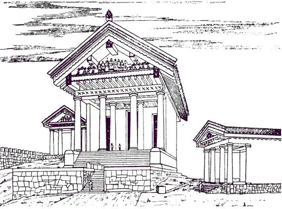Рис. 17. Реконструкция храмов в акрополе Козы, около 100 г. до н. э.