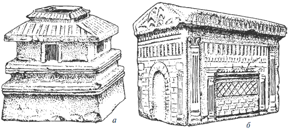 Рис. 18. а – саркофаг из Кьюзи в виде дома; б – саркофаг в виде дома. Археологический музей Флоренции.