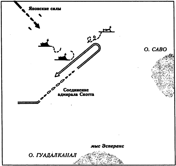 В ответ на предложение Нимица, Гормли послал на Гуадалканал полк солдат из Новой Каледонии. Тернер командовал конвоем, «Хорнет» и «Вашингтон» прикрывали фланги, и группа эсминцев и крейсеров под командованием контр-адмирала Нормана Скотта выступила, чтобы пустить под откос «Токийский экспресс», который, по сообщениям летчиков, в это время проходил через пролив Слот. Как оказалось, этот специфический «экспресс» состоял не из транспортов с подкреплением, а из крейсеров и эсминцев, шедших обстреливать Гендерсон-филд. В ночь с 11 на 12 октября силы Скотта и этот «экспресс» столкнулись к северо-западу от Гуадалканала в сражении у мыса Эсперанс. Американцы потопили один крейсер и один эсминец противника, потеряв один эсминец, но Скотт в первом сообщении по ошибке сообщил о потоплении «приблизительно 15» вражеских кораблей. Он таким образом сильно, хотя и временно, взбодрил удрученное командование Южно-Тихоокеанского флота.