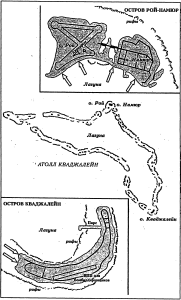 Сразу же после окончания операции в архипелаге Гилберта адмирал Паунэлл с двумя группами авианосцев совершил рейд и произвел аэрофотосъемку Вотье и Кваджалейна. Полученные таким образом данные показали, что на последнем происходит наращивание боевой мощи противника. Это был еще один аргумент в пользу предложения Спрюэнса, Тернера и Смита произвести штурм Маршалловых островов в два этапа. На фотографиях было видно, что вдобавок к аэродрому на острове Рой, в северном конце атолла Кваджалейн, японцы строили второй аэродром – на острове Кваджалейн в южном конце атолла.