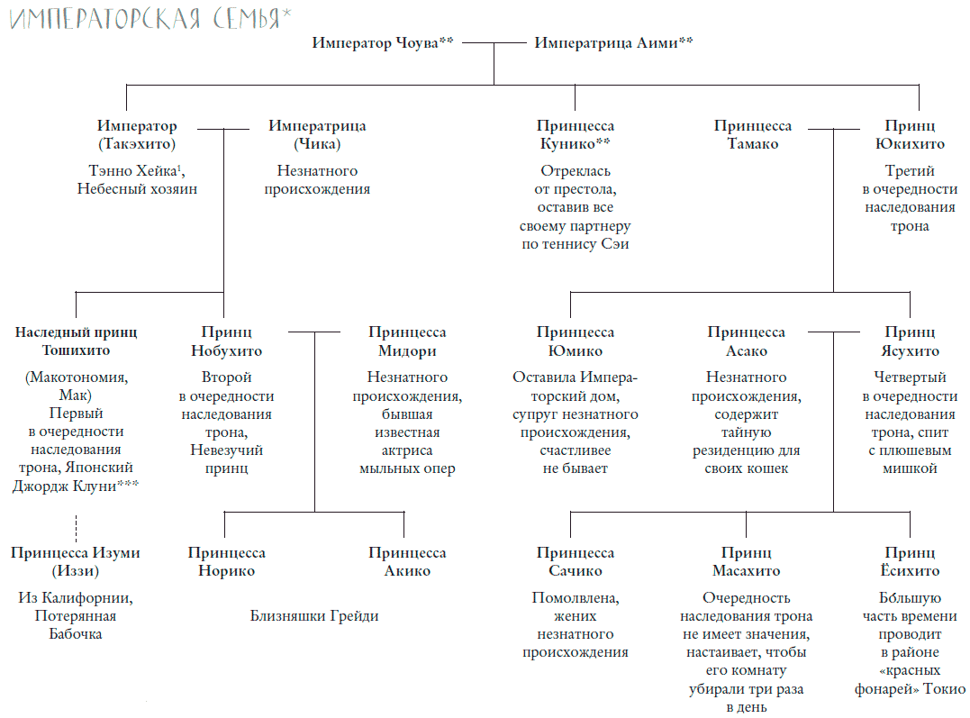 – Он из императорской семьи. – Пауза. Ее лицо озаряется улыбкой. – Принц. – Снова пауза. Улыбка становится шире. – Если быть точнее, наследный принц Японии. Его настоящее имя – Макотономия Тошихито.