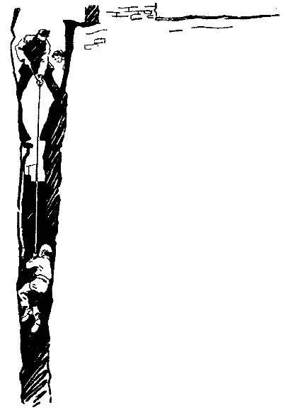 Он стал осторожно спускаться: очень медленно перебрал ладонями по стене на несколько сантиметров ниже, потом сделал то же самое спиной и ногами. Так, ослабляя напряжение сначала в ладонях, потом в коленках, потом опять в ладонях и снова в коленках, он, царапая спину, двигался вниз. Он опускался все ниже в густеющий сумрак, сырость и холод. Полоска неба вверху делалась все уже, а когда она превратилась в голубую ленту, ноги наконец коснулись земли.