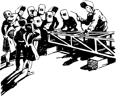 – О себе что расскажешь? Почти нечего. Вам, товарищи, каждому по тринадцать-четырнадцать лет, и вы уже в седьмом классе. А мне – тридцать восемь, и я ещё только на первом курсе института. А все – война. Теперь приходится догонять. Ну, вам-то война не должна помешать, об этом сейчас все стараются… Там, где я родился, школ, можно сказать, совсем не было – пустыня, дикие горы, близко граница. Баи держали народ под сапогом; им помогали басмачи – грабили жителей, убивали коммунистов. И моего отца убили. Учиться было негде. Я пас овец муллы и лазил по горам. Любил я лазить. Там я познакомился с молодым инженером с Варзобстроя. Он охотился в горах, подстрелил птицу, а достать не может. Я слазил на скалу, достал. Он говорит: «Молодец, хорошо лазаешь. Пойдём со мной на строительство ГЭС. Работать будешь, учиться будешь. Станешь человеком». Я сразу полюбил свою работу. Огонь в руках – шутка ли! Он и режет, и варит, и спаять может, и закалить, и отпустить металл. Вот какая сила в руке сварщика. Правда, со стороны посмотреть – ничего особенного: ведет себе человек электрод, огонек шипит, потрескивает, – можно подумать, простое дело – кажется, возьмешь держатель и повторишь все. Да нет. Это искусство. Прежде всего рука у сварщика должна быть точной и гибкой, как у музыканта, чтобы электрод вместе с кистью плавно колебался по ширине шва. Без этого и кромки не прогреются, и сам шов равномерно наращиваться не будет. Вот посмотрите…