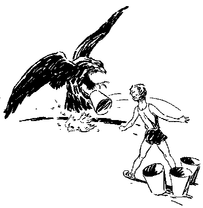 Коршун перестал терзать курицу, повернул голову и вперил в Клима глаза – злые, с краснинкой, как две мокрые черничины. Секунду мальчик и коршун смотрели друг на друга – мурашки побежали у Клима по спине, он уже готов был убежать, но вместо этого размахнулся и запустил в коршуна ведром.