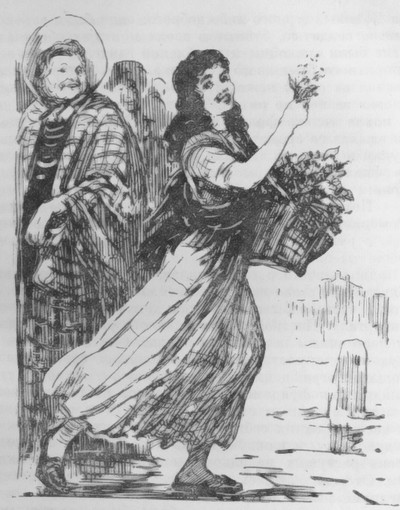 У Кадины был прескверный характер. Ее не устраивала роль подчиненной. Поэтому она в конце концов завела свое собственное торговое дело. А так как ей было тогда тринадцать лет и она даже мечтать не могла о большом торговом обороте, о прилавке в цветочном ряду, то она стала продавать букетики фиалок по одному су; на шее у нее висел ивовый лоток, а фиалки были воткнуты в подстилку из моха. Так, нося с собой свою маленькую лужайку, она бродила ведь день по Центральному рынку и вокруг него. Это беспрерывное хождение ей нравилось – можно было размять ноги, она избавлялась от необходимости часами стоять на коленях на низенькой скамеечке, составляя букеты. Теперь она на ходу собирала свои фиалки в пучок, вертела их в пальцах, как веретенца, с поразительной ловкостью; она отсчитывала шесть – восемь цветков, – в зависимости от времени года, – складывала пополам камышинку, добавляла листок, обматывала мокрой ниткой; затем перекусывала нитку острыми, как у волчонка, зубами.