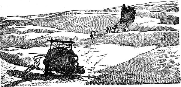 «В сильном волнении я пошел по следам собачьих лап и через несколько минут услыхал лай собаки и голос человека. Как забилось мое сердце при этих звуках! Ничего не видя вокруг, не помня себя, я несся на лыжах между глыбами льда и скоро заметил живое существо, которое подвигалось ко мне. Это была собака, но за нею было другое живое существо – это был человек!..