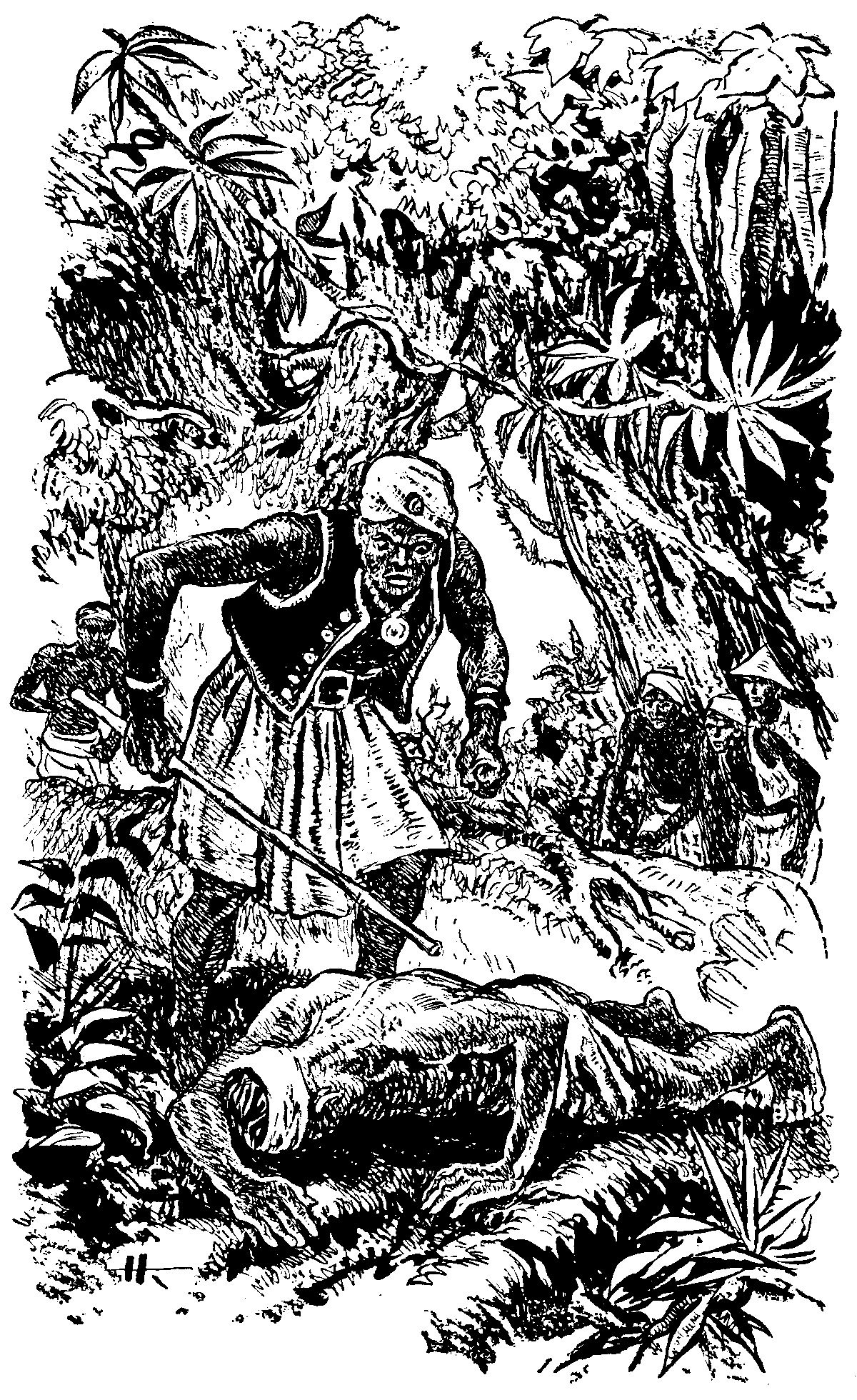 Дерево рухнуло. Четверо малайцев успели отскочить, остальные остались на земле, подмятые верхушкой.