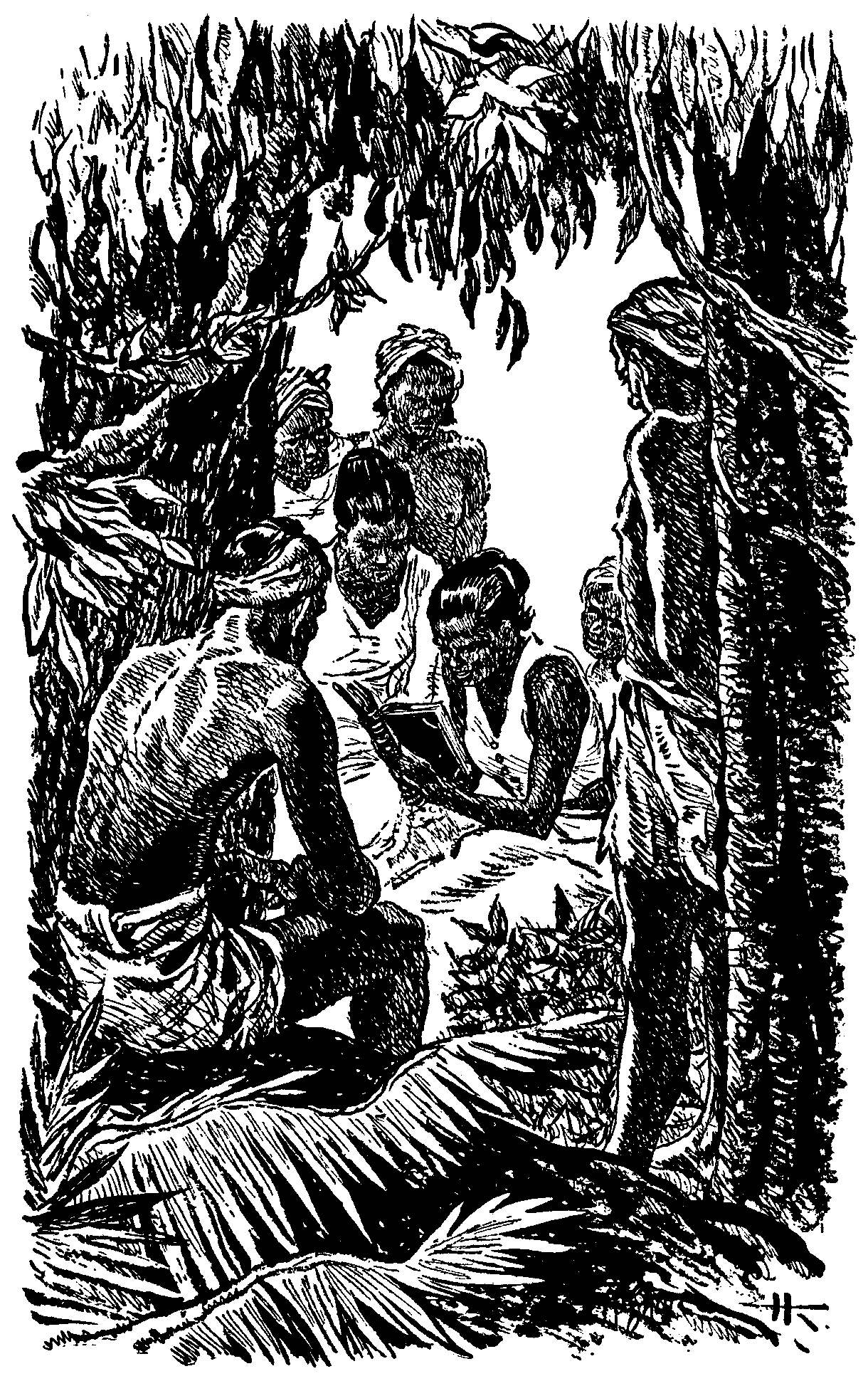 На тесной полянке в глубине зарослей сидели, собравшись в кружок, все рабочие и работницы с участка. Даже мандуры были здесь. Они сидели на земле, скрестив ноги, и слушали.