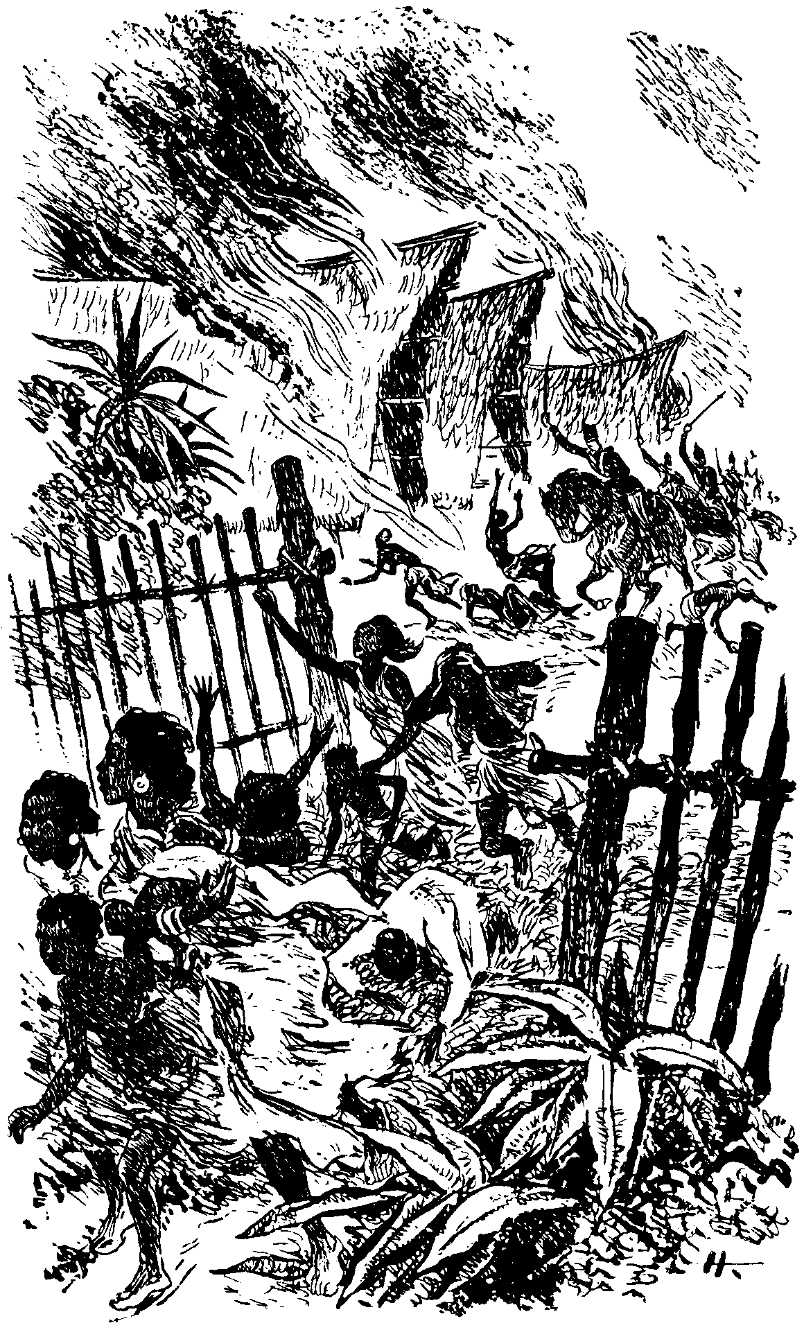 Конные рубили наотмашь, вправо и влево, не щадя ни женщин, ни стариков. Огонь летел со стропил, женщины с воем выбегали из хижин, хватали детей. Буйволы метались в дыму, с рёвом проламывали загородки. Мужчины отстреливались с крыш; когда хижина вспыхивала, как факел, – перескакивали на соседнюю и стреляли оттуда.