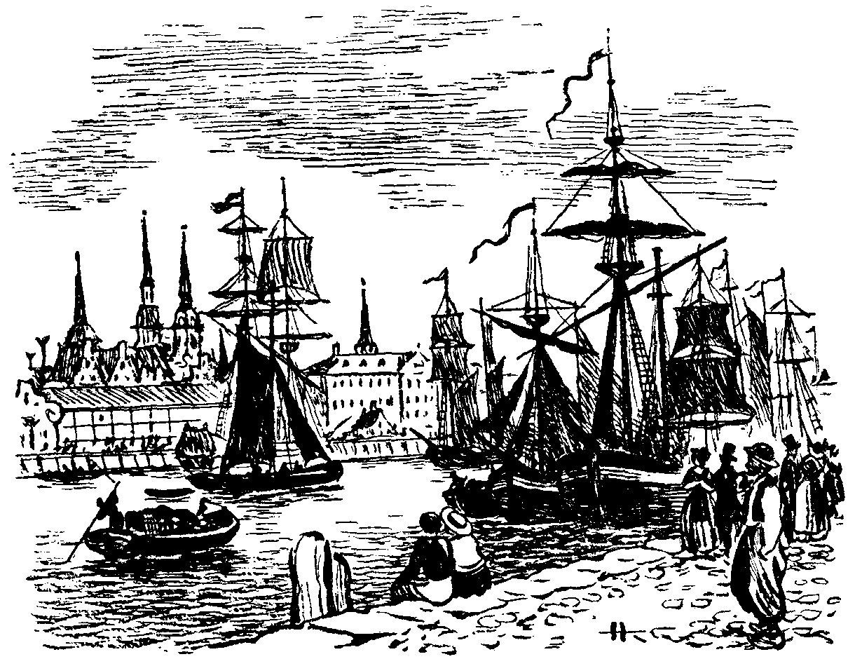 Амстердам был оживлён с утра до вечера, но не шумен. Торговый склад Европы, «магазин света», он не знал дребезжания колёс, пыли, тесноты, грохота и шума других больших городов. Его каналы бесшумно несли на себе всю тяжесть торгового груза; барки с лесом, рыбой, торфом, посудой, льном неслышно скользили по зелёной грязноватой воде. По воде плыли дилижансы, полные народу.