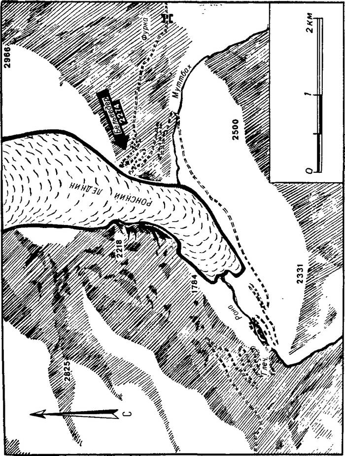 Рис. 12-Б. Положение Ронского ледника в 1955 г.