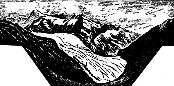 Рис. 12-И. Pecten Ронского ледника в 1874 г. начал глубокое отступание, он сплющился, но все еще существует. Фотография сделана с левого склона Ронской долины [262].
