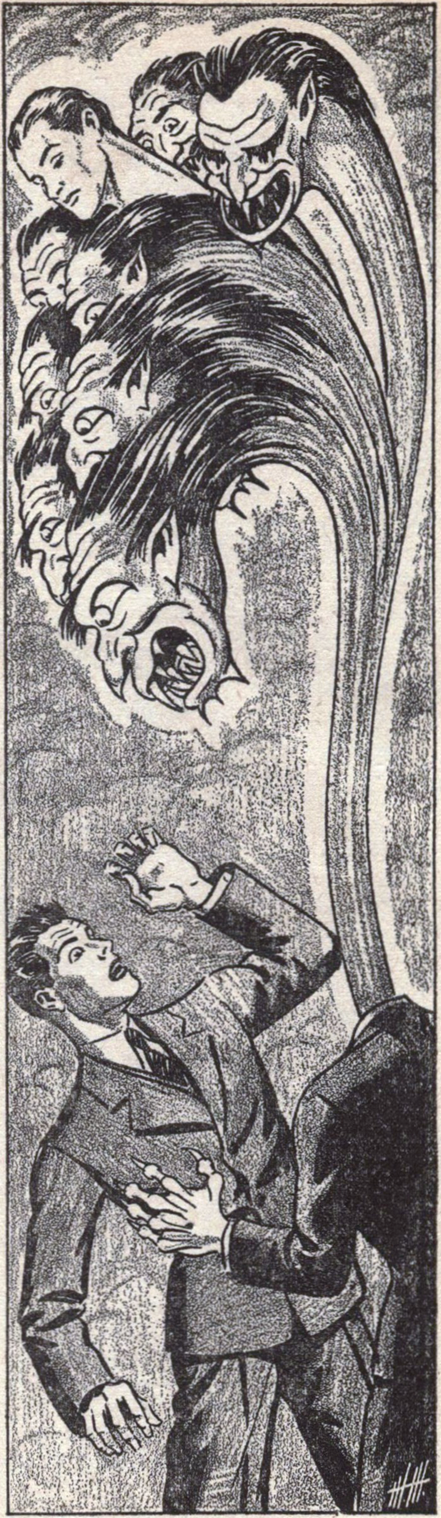 В ту ночь мне приснился жуткий сон, в котором я увидел, как у Алансона внезапно выросли десять голов, каждая с глазами демона. Я бежал, пока не задохнулся, затем развернулся, и десятая голова чудовища, человеческая, с печальным лицом, глухо проговорила:
