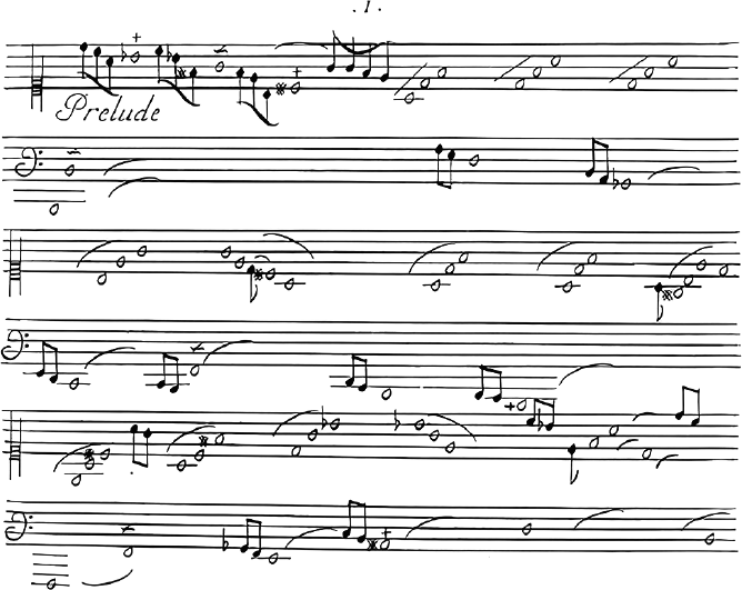 Нотация без таковых черт в прелюдии (опубликованной в 1687) для клавира Элизабет Жаке де ла Герр